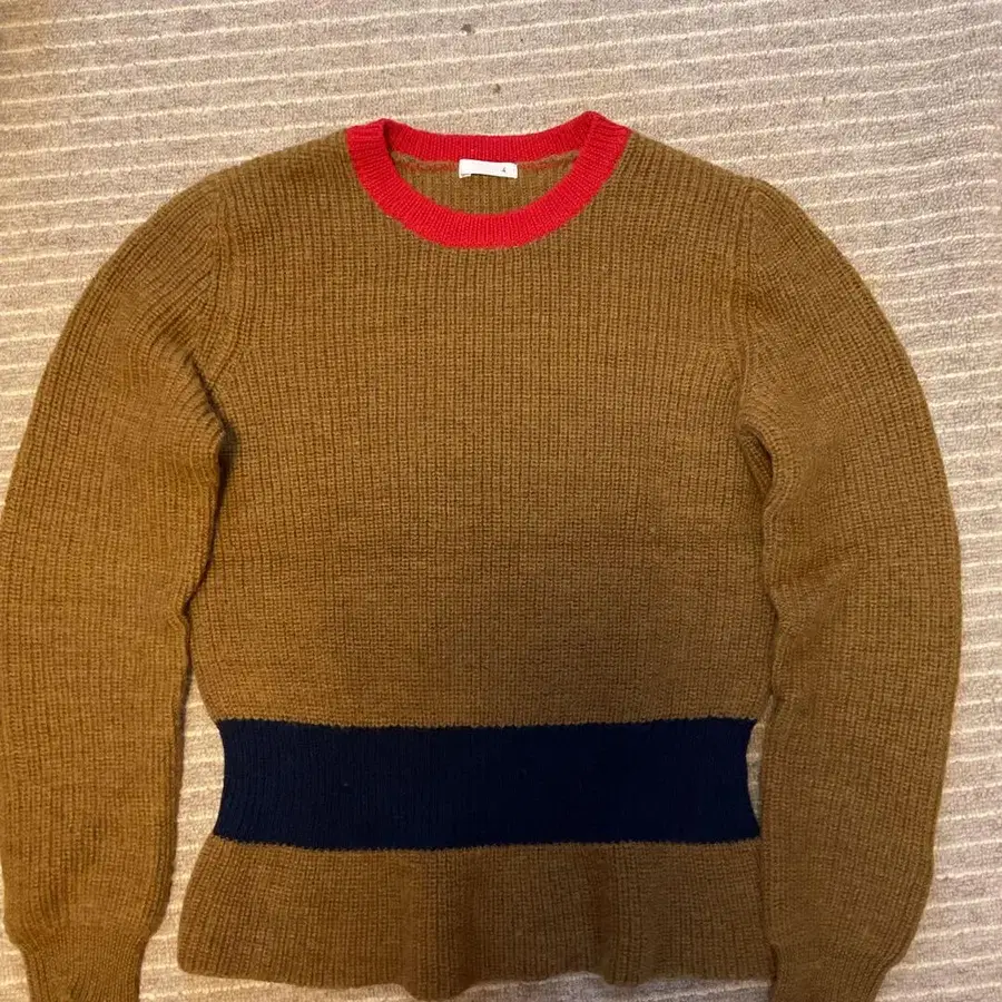 리브 디자인의 컬러 블록 디자인 긴팔 니트 스웨터. - 색상: 브라운, 레드, 네이비 - 넥 타입: 크루넥 - 디자인: 리브, 컬러 블록 - 소매 길이: 긴팔 - 소재: 니트 방문해 주셔서 감사합니다. 사이즈 - M
