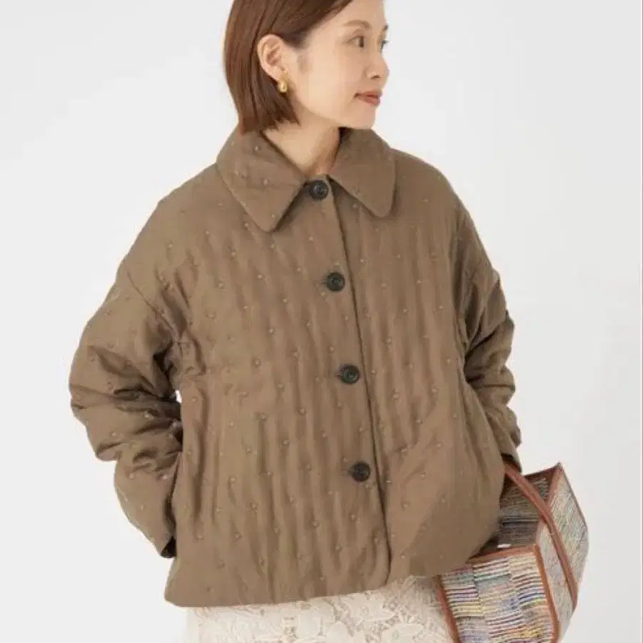 자동 번역되었어요. 원문보기도트 퀼트가 돋보이는, 심플한 스탠 칼라 디자인의 자켓.