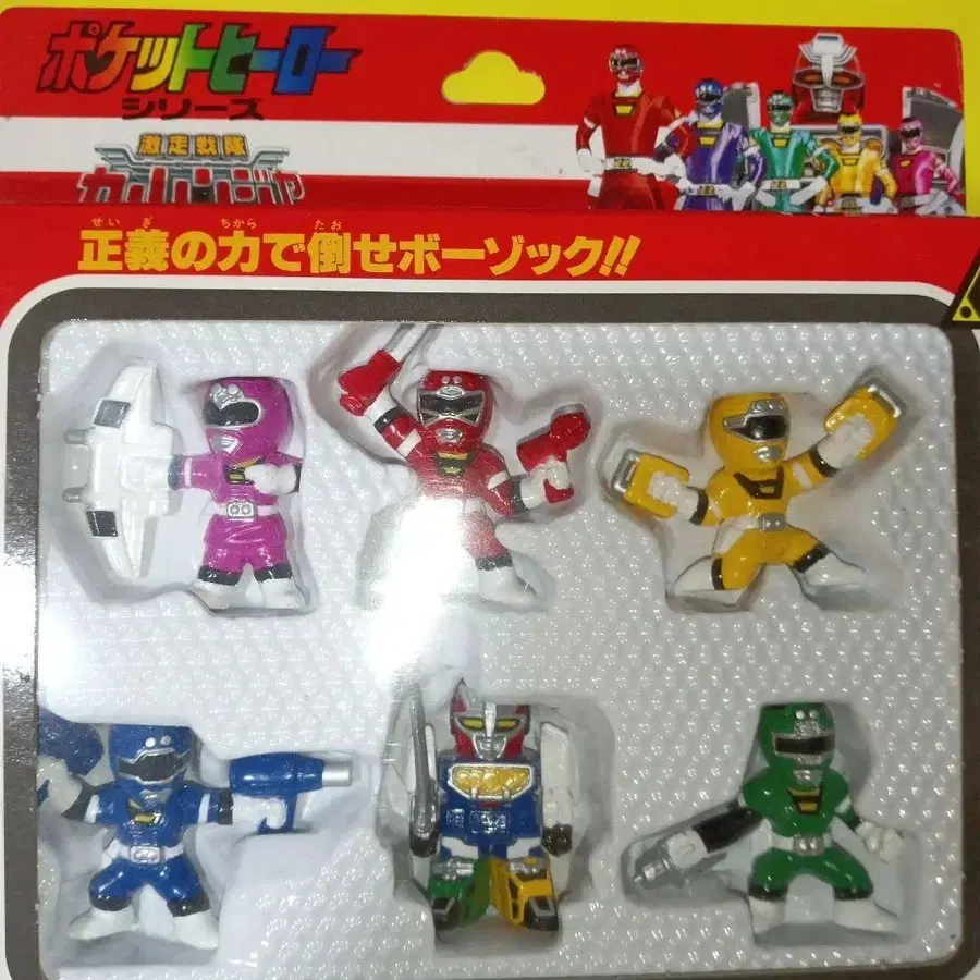 6체 세트의 카레인저 피규어, RV 로봇 발진 기능 포함.