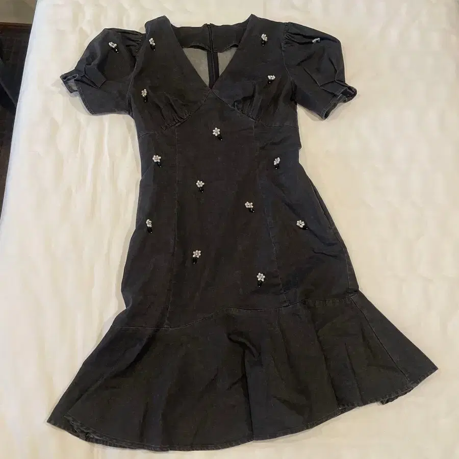 다크 그레이 플레어 스커트, 꽃 장식 반팔 원피스. 단 한 번 착용했습니다. 중고품이므로 이해해 주시는 분만 구매 부탁드립니다. 사용감을 이유로 한 반품은 거절합니다. #birthdaybash - 색상: 다크 그레이 - 디자인: 플레어 스커트, 꽃 장식 포함 - 소재: 코튼 98%, 스판덱스 2% - 소매 스타일: 퍼프 슬리브 - 기장: 무릎 기장 방문해 주셔서 감사합니다.