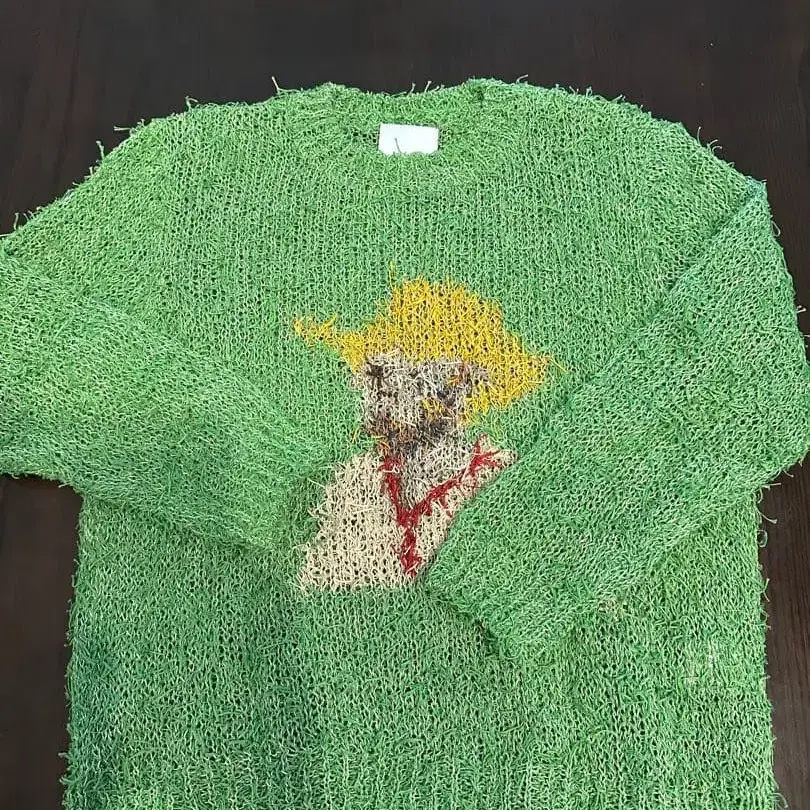 Kota gushiken 코타 구시켄 23년 고흐 여름 니트. 한 번 시착만 한 상품으로 특별한 흠집이나 얼룩 없이 새상품급입니다. 정가 72,600엔. Summer Van Gogh Long Skeeve Top - green Central Saint Martins 출신 디자이너 구시켄 코타 (kota gushiken)가 만드는 니트 의류 브랜드. 역시 고흐를 좋아합니다. 봄/여름 고흐이므로, 여름 느낌의 고흐 초상화를 모티브로 고흐의 점묘법을 코튼으로 표현하기 위해 다양한 색을 섞은 실을 오리지널로 만들었습니다. 고흐 특유의 우울한 분위기를 내기 위해 망사 패턴의 한 땀 차이에 신경 써서 디자인을 재현했습니다. 다만 역시 모든 패턴을 니트로만 표현하는 것이 어려워 눈, 코, 입과 의류의 빨간색 라인은 손자수로 넣었습니다. 원작을 따라 좌우 눈 색깔이 다릅니다. 손자수이므로 1벌마다 고흐의 표정이 달라집니다. 물로 세탁하면 실이 녹아 단순한 시스루가 될 가능성이 있으므로 손세탁은 절대 하지 마십시오.