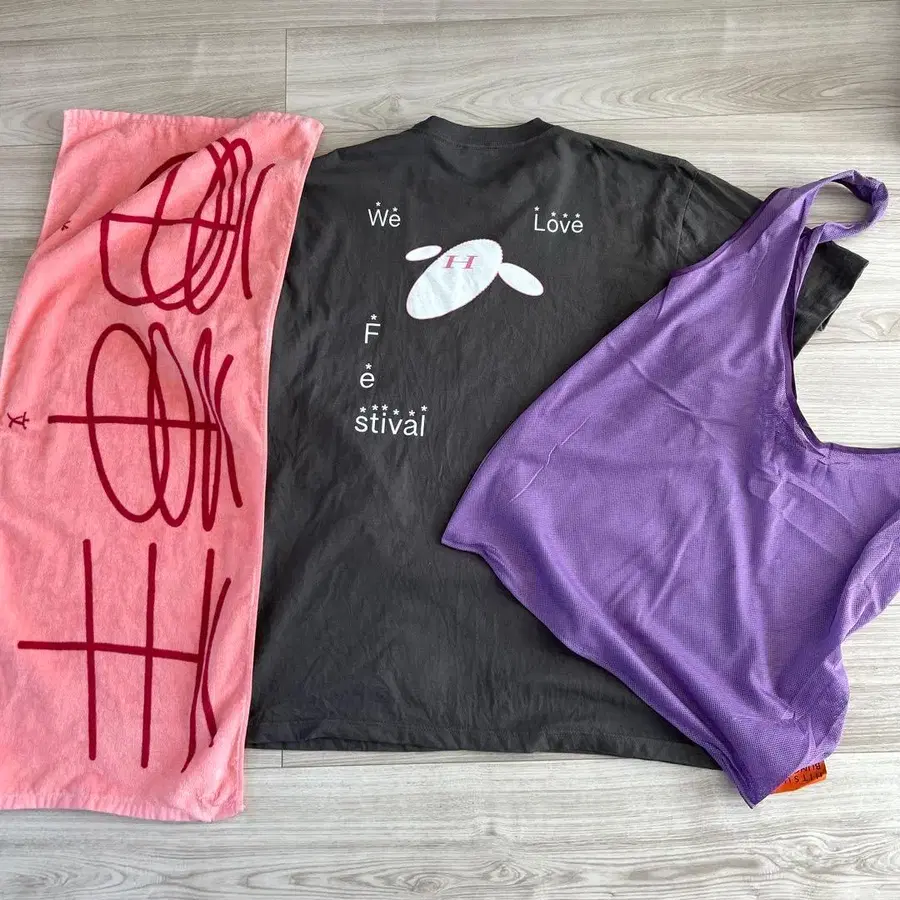 CDJ에서 구매하여 당일 착용했습니다. 타월, T셔츠(XL), 백 세트입니다.
