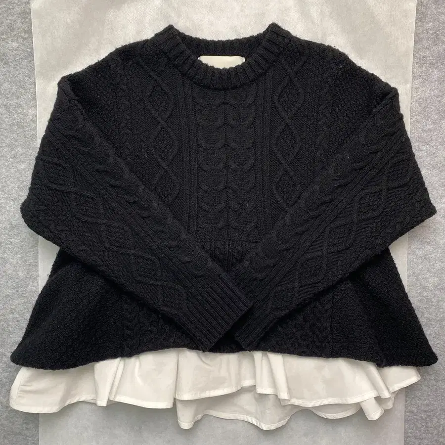 • 레이스 옷깃이 걸리시한 분위기의 페플럼 니트 블랙