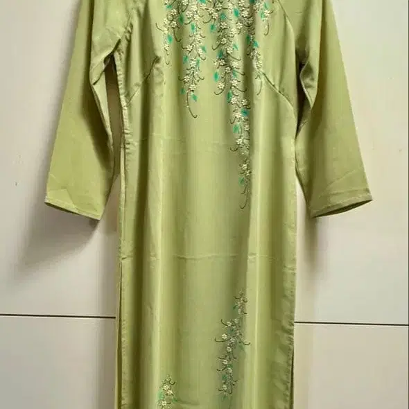 miss ao dai 아오자이 100% 실크 자수 라이트 그린
