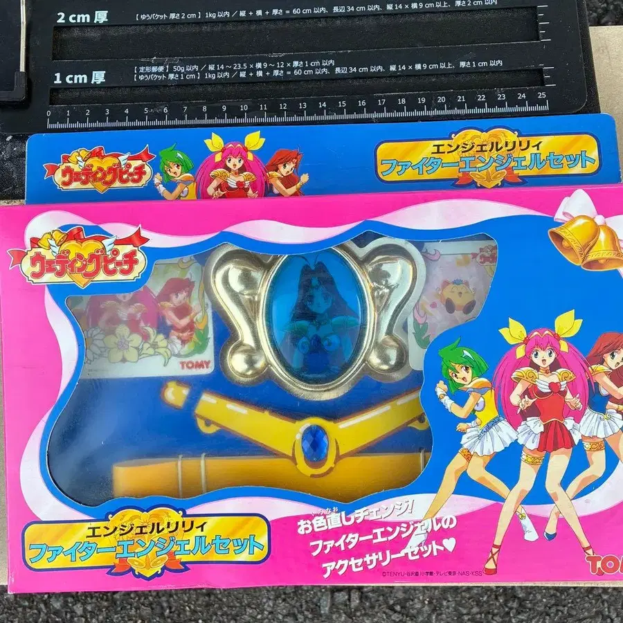 TOMY제 파이터 엔젤 릴리 세트, 파랑과 금색 디자인이 특징인 액세서리 세트입니다. - 브랜드: TOMY - 상품명: 파이터 엔젤 세트 - 색상: 파랑/금색/옐로우 컬러 - 부속품: 액세서리 세트 오래된 제품이므로 테이프 자국이 노후화되어 있습니다.