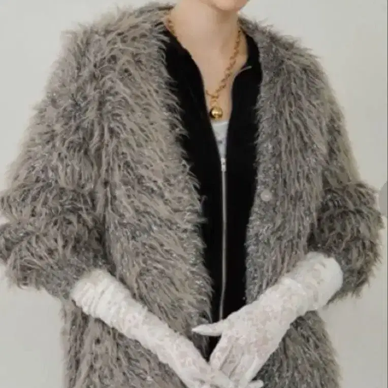 yae 2way 글리터 페더 니트 가디건 택 포함 새상품 그레이