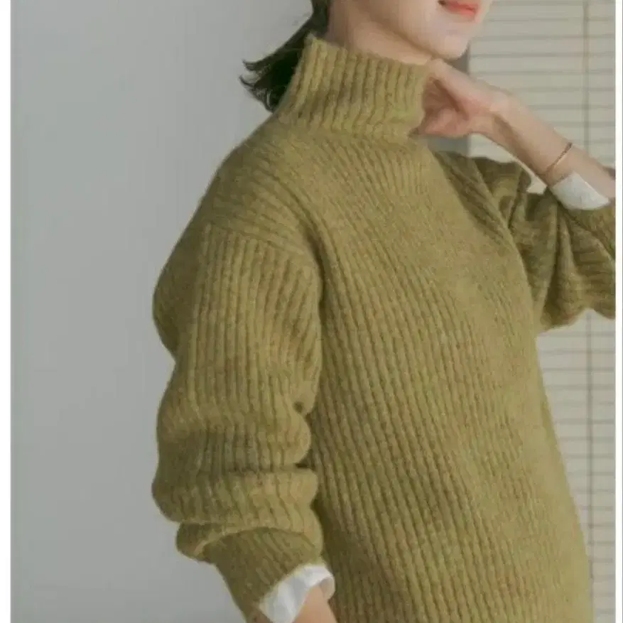 abahouse ecru/터틀넥 니트 스웨터/루즈핏 스카이블루