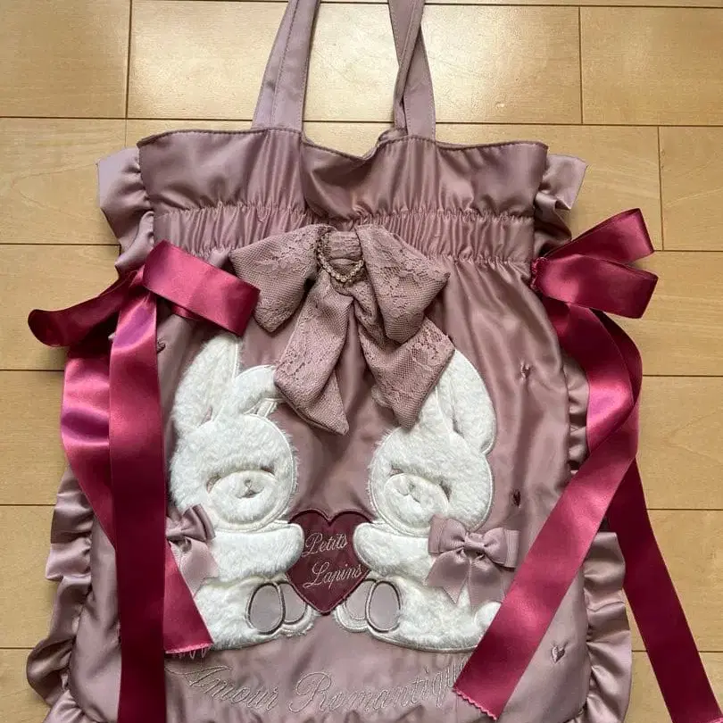 Maison de FLEUR 베리에짱 더블 리본 토트백 핑크