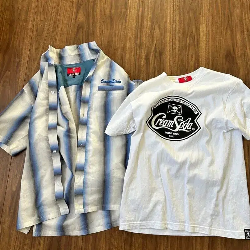 해당 상품은 크림 소다의 셔츠와 T셔츠 세트 판매입니다! 둘 다 새상품 구매 후 한두 번밖에 입지 않았습니다! 사이즈 - M