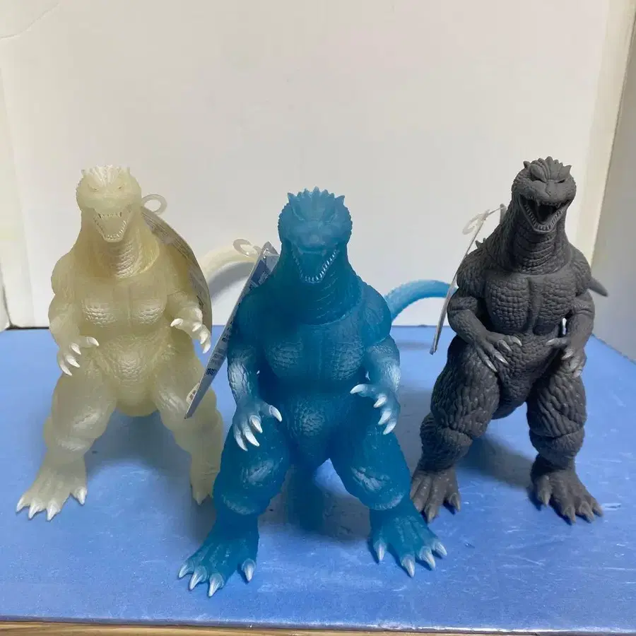 무비 몬스터 시리즈 고질라 2005 한정판 3개 세트 [ 파이널 워 고질라 ] 사이즈: 전체 높이 약 23cm 클리어 블루 (극장 한정판) 클리어 화이트 (이토요카도 한정판) 무광택 그레이 (HMV 한정판) 상품은 미사용 새상품입니다. 당시 구매 후 어두운 곳에 보관했던 것으로 눈에 띄는 흠집이나 색바램도 없습니다. 발송 시 꼬리를 분리하여 보내드립니다. 꼬리를 다시 끼울 때 뻑뻑하여 잘 들어가지 않는 경우, 살짝 따뜻하게 데워서 끼우면 잘 들어갑니다.
