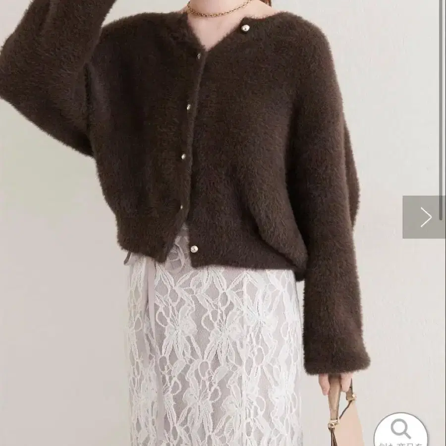 라메 샤기 크롭 가디건