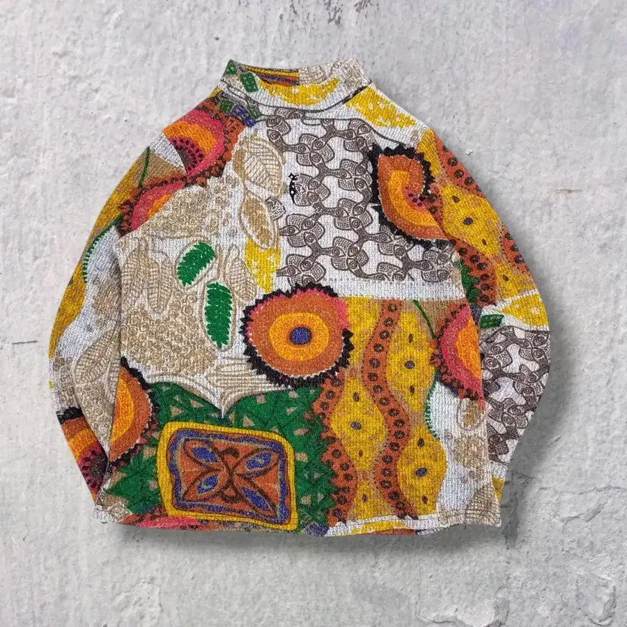 90s 올 패턴 아트 니트 스웨터 크롭 멀티 M