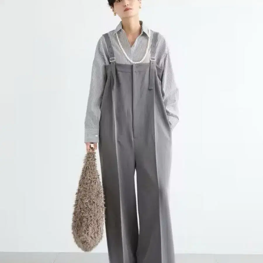 • CHIN STUDIO 스트라이프 서스펜더 살로펫 와이드 팬츠