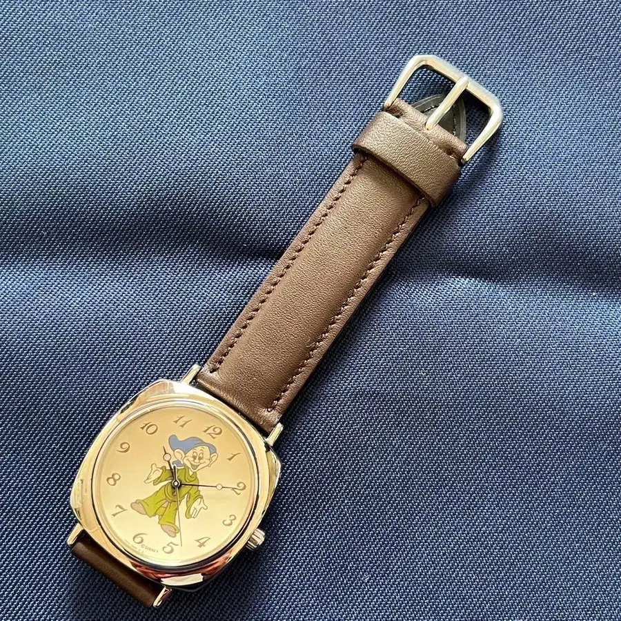 이것은 알바 시계입니다. 다이얼에 백설공주의 도피(Dopey)가 프린트된 귀여운 쿼츠 시계입니다. 방풍에 흠집 없이 기타 눈에 띄는 얼룩이나 데미지 없이 양호합니다. 무브먼트 쿼츠 밴드 소가죽