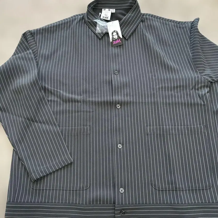 미사용 새상품 택 포함 반값 이하 폴리에스테르 소재로 튼튼합니다. 우레탄이 들어 있어 부드럽고 약간의 스트레치가 있습니다. 오버핏으로 멋스럽게 연출할 수 있을 것 같습니다.