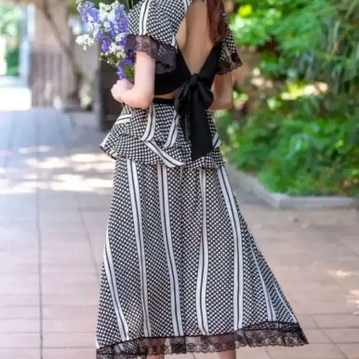 EmiraWiz 엘레강트한 디자인의 스트라이프 원피스, 등 부분이 오픈된 스타일로 매력적입니다. - 타입: WOMEN - 소재: 폴리에스테르 100% (안감) 폴리에스테르 100% (레이스) 나일론 10% 방문해 주셔서 감사합니다.