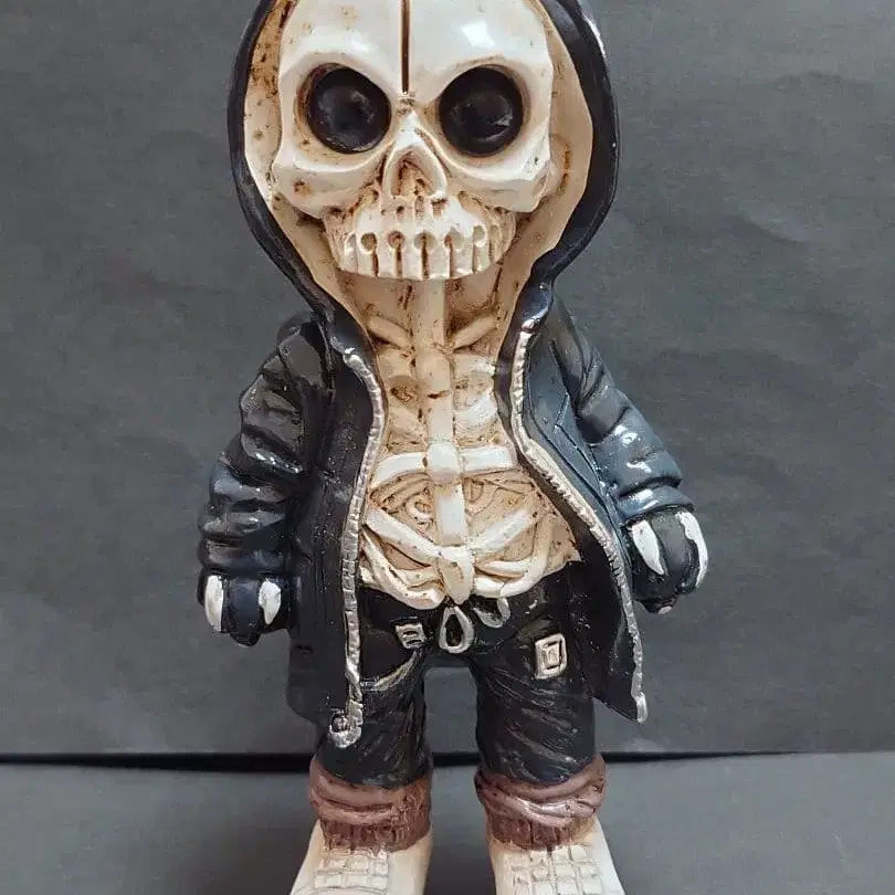 스컬 디자인의 피규어, 블랙 자켓과 화이트 스니커즈가 특징입니다. 상자는 개봉했지만, 상품 확인 및 촬영을 위해서만 사용했습니다. 미사용 새상품입니다. - 디자인: 스컬 디자인의 피규어 - 복장: 블랙 후드 부착 자켓과 팬츠 - 신발: 화이트 스니커즈 - 소재: 에폭시 수지 (플라스틱보다 무거움) - 특징: 골격이 보이는 디자인 - 사이즈: 약 16cm 배송비 문제로 인해 할인은 어렵습니다. 방문해 주셔서 감사합니다.
