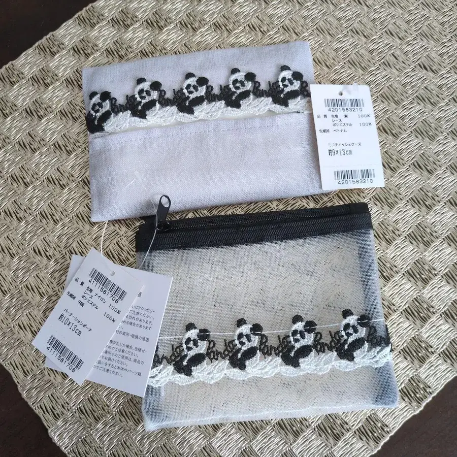 팬더 자수가 특징인 파우치 티슈 케이스 2세트. - 디자인: 팬더 자수가 놓인 디자인 - 사이즈: 약 9 x 13cm - 사이즈: 약 10 x 13cm - 소재: 폴리에스테르 100% - 색상: 그레이 방문해 주셔서 감사합니다.