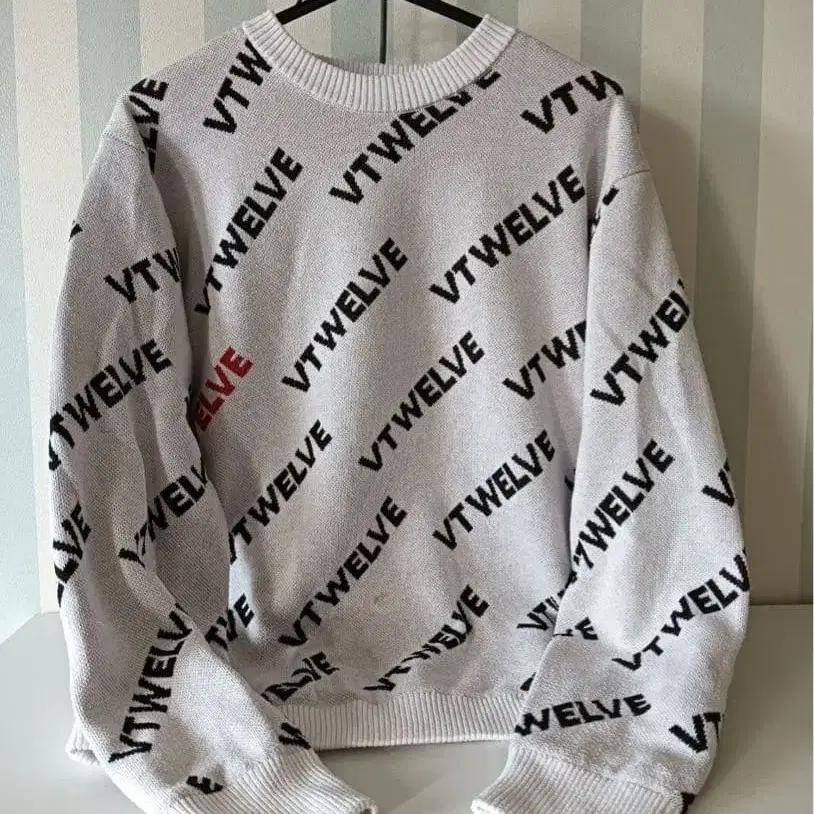 VTWELVE의 로고가 전체에 베풀어진 크루넥 스웨터. - 브랜드: VTWELVE - 색상: 화이트 - 디자인: 로고 프린트 - 스타일: 크루넥 앞면 아래쪽에 세탁으로 지워지지 않는 얼룩이 있습니다. 이미지의 4, 5, 6번째를 확인해 주세요. 뒷면 오른쪽 아래쪽에 작은 올풀림이 있습니다. 이미지의 3번째를 확인해 주세요. 방문해 주셔서 감사합니다.