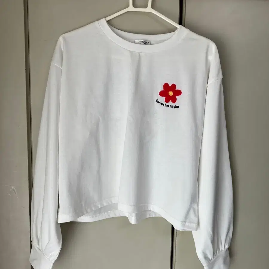 플라워 자수와 하트 로고가 특징인 크롭 긴팔 T셔츠. - 색상: 화이트 - 디자인: 플라워 자수 - 디자인: 하트 로고 - 텍스트: STARS LOVE - 소매 스타일: 긴팔 - 핏: 크롭 방문해 주셔서 감사합니다.