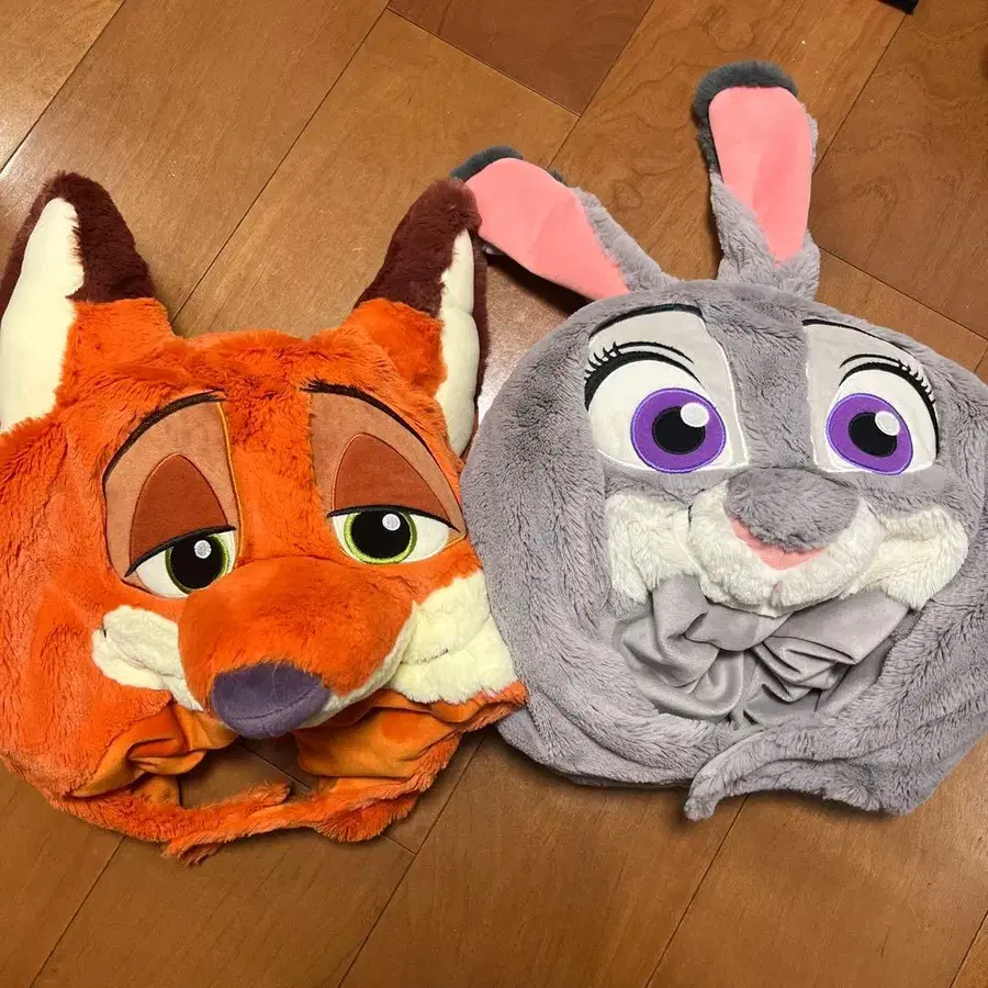 디즈니 캐릭터 닉 와일드와 주디 홉스의 플리스 모자, 프리 사이즈로 귀여운 디자인.