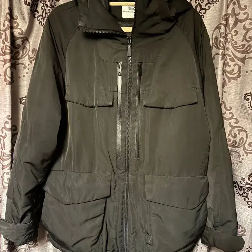 유니클로 화이트 마운티니어링 다운 자켓 올리브
