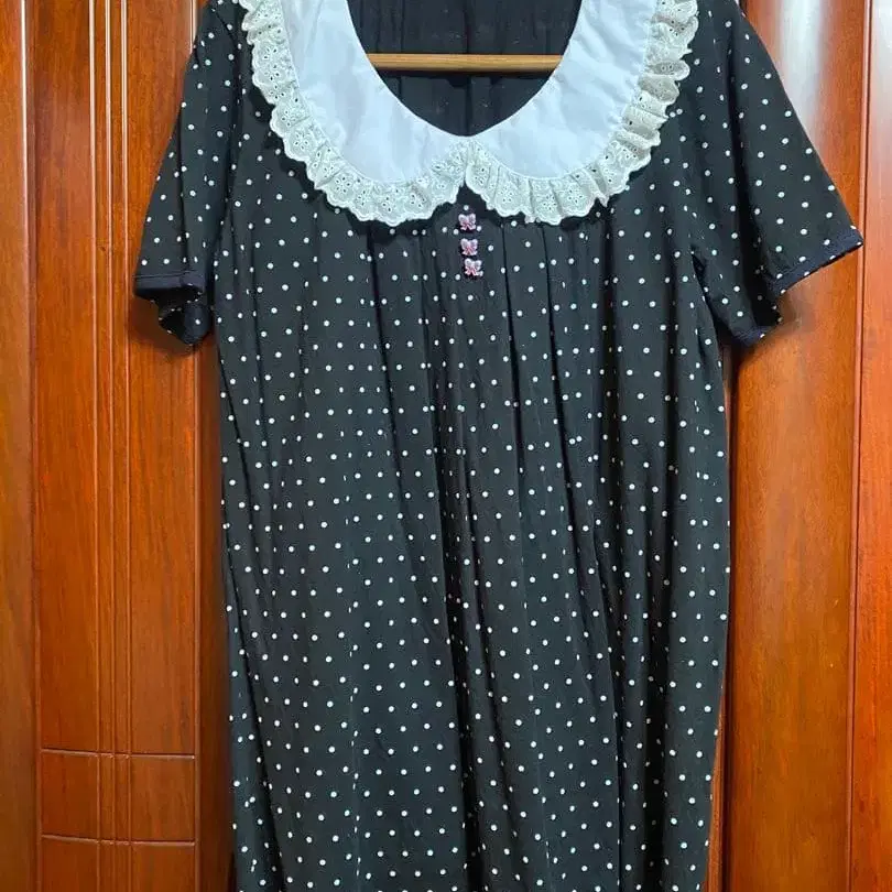 도트 무늬의 레이스 카라 부착 캐주얼 셔츠. - 브랜드: milklim - 색상: 블랙 - 디자인: 도트 무늬 - 옷깃: 레이스 부착 - 장식: 리본 버튼 10년 가까이 전에 구매한 것입니다. 아기 옷과 같은 큰 옷깃이 매우 귀엽습니다. 방문해 주셔서 감사합니다.