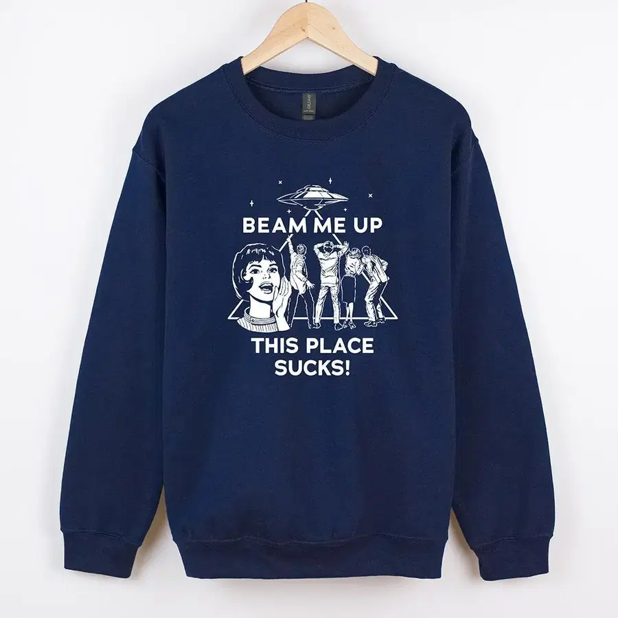 XL 기묘한 이야기 맨투맨 로빈 BEAM ME UP 네이비