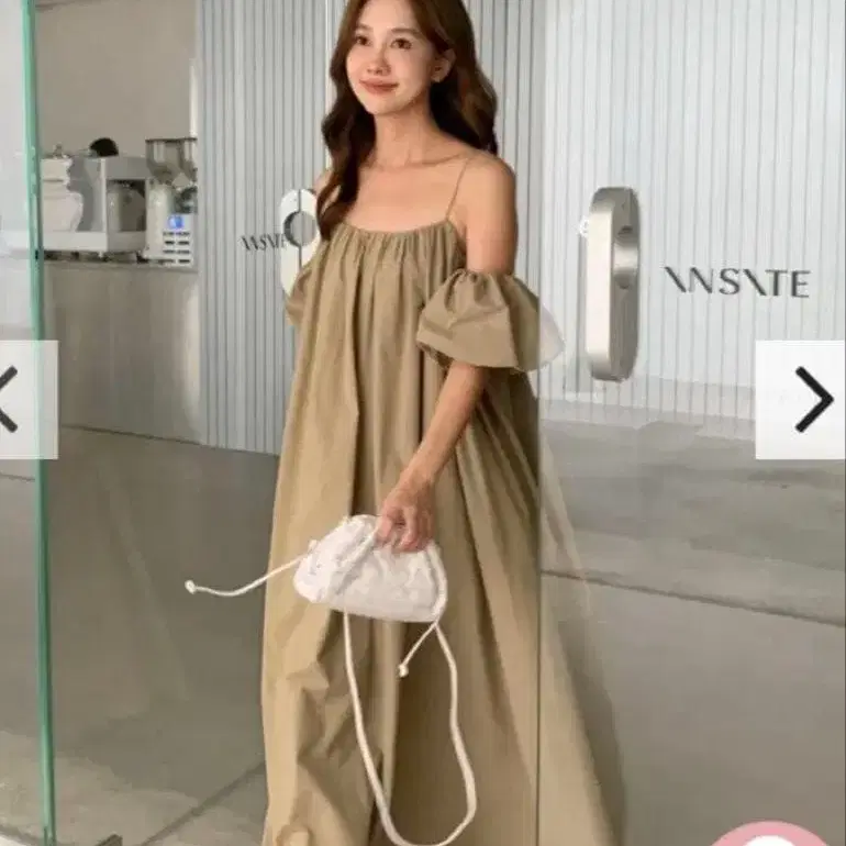 자동 번역되었어요. 원문보기릴랙스 핏의 베이지 오프숄더 원피스, 경량 원단으로 쾌적함.