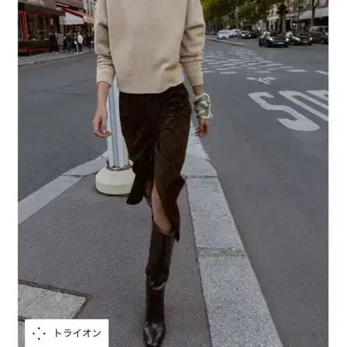 고급 브라운 사이드 슬릿 판초