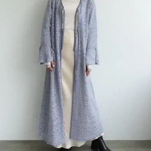 sahara 2way 레이스 드레스 가운 그레이쉬 블루 프론트/백 어느 쪽으로도 착용 가능한 2way 사양의 레이스 롱 원피스. 표면은 약간 기모감이 있는 레이스를 사용하여 독특한 표정이 매력적입니다. 타일 디자인 같은 레이스 무늬는 너무 귀엽지 않으면서 모던한 여성스러움을 연출합니다. 프론트를 열어 겉옷으로도, 백리본 스타일의 원피스로도 장면에 따라 다양한 스타일링에 활약하는 1착입니다. ※ 기모가 있는 레이스 원단이므로 보풀이 생기기 쉬운 소재입니다. 원래 복슬복슬하게 기모가 있는 레이스 원단이지만, 사용감에 의한 것도 있다고 생각하므로 저렴하게 판매합니다. 원래 원단과 비교한 정도는 알 수 없습니다 - 사이즈 - FREE SIZE