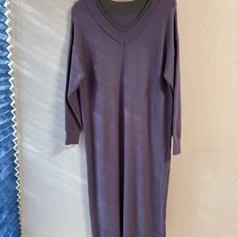 KBF 퍼플 V넥 롱 니트 원피스