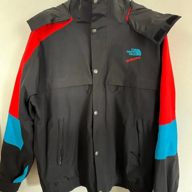 후드는 탈부착이 가능하여 날씨에 맞는 스타일을 선택할 수 있습니다. 지퍼와 버튼에도 로고를 새겼으며, 왼쪽 가슴에는 브랜드 스테디셀러인 하프 돔 로고와 Extreme 로고를 포인트로 넣은 제품입니다.