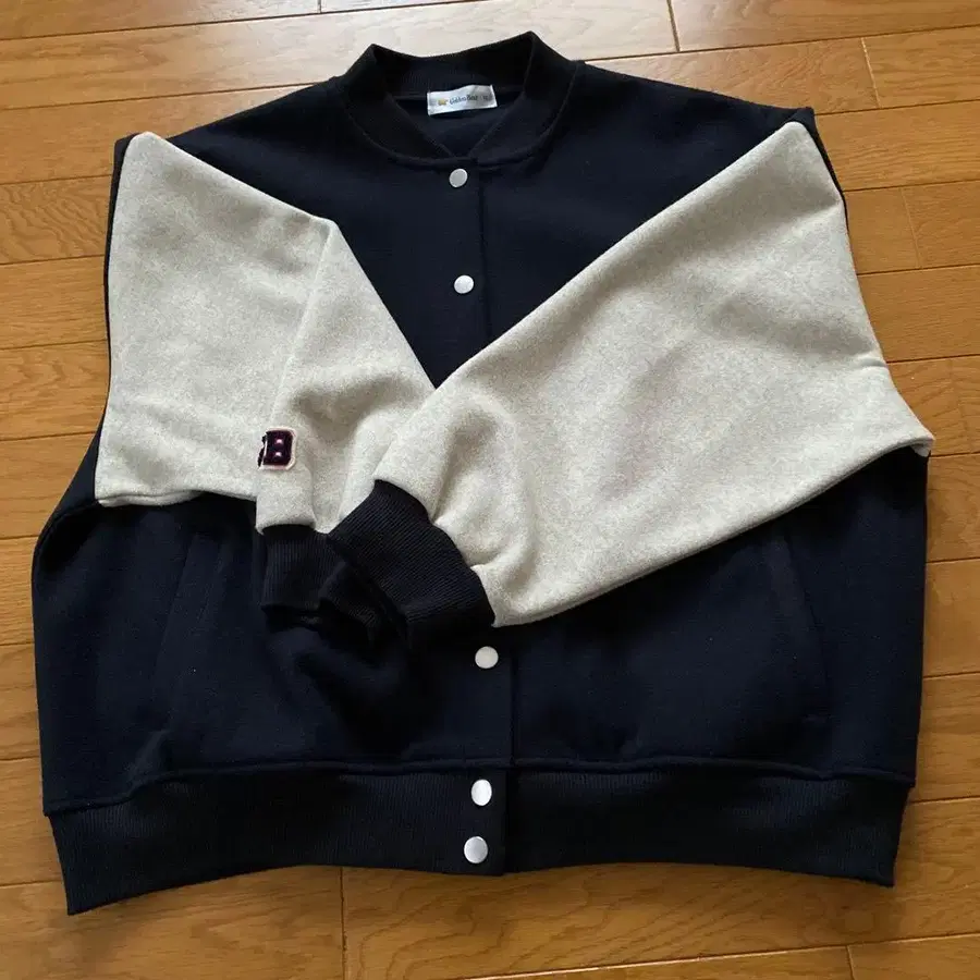 네이비와 그레이의 배색이 특징인 L 사이즈 바시티 자켓. 단추식과 포켓 부착으로 실용적입니다. - 색상: 네이비/그레이 - 사이즈: L - 디자인: 단추식, 포켓 부착 - 소재: 코튼 혼방 방문해 주셔서 감사합니다. 사이즈 - XL(LL)