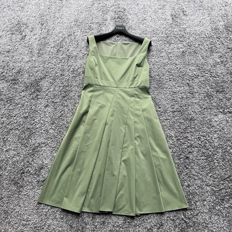 탁한 라이트 그린 계열의 뉘앙스 컬러. 탄력 있는 그로그랭 소재로 풍성한 플레어 디자인. 약간 하이웨스트 절개. 백 지퍼입니다.