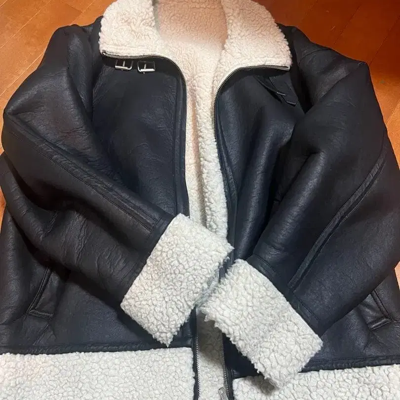 [ 새상품급 ] qualit 램 가죽 후드 부착 자켓