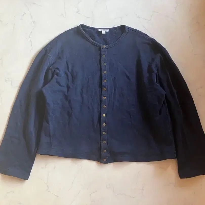 방문해 주셔서 감사합니다! 1990년대 ~ 2000년대 초반 agnes b. homme (아그네스베 옴)의 스냅 버튼 맨투맨 가디건입니다. 고급 스웨트 원단으로, 착용감과 디자인 모두 스페셜한 아이템입니다. 스테디셀러 스냅 가디건을 베이스로 한 디자인으로, 크루넥 사양이라 이너를 가리지 않고 착용 가능합니다. 짧은 기장의 박스 실루엣으로, 팬츠와의 밸런스도 잡기 쉬운 아이템입니다. 속기모 스웨트 소재로, 적당한 두께감이 있어 가을, 겨울, 봄 등 다양한 시즌에 활용 가능합니다. 심플하고 군더더기 없는 디자인으로, 캐주얼부터 포멀까지 매치하기 좋은 아이템입니다. 상태에 대해 전반적으로 사용감이 있으며, 핀홀과 약간의 얼룩이 보입니다. 소재 코튼 100% 색상 네이비 사이즈 가슴 너비 - 58cm 소매 길이 - 57cm 기장 - 61cm vintage/빈티지/빈티지/00s/00년대/후지와라 히로시/90s 사이즈 - L