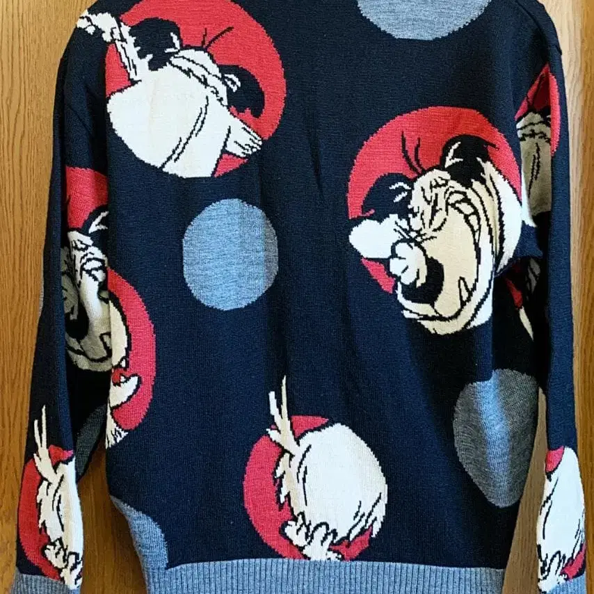 명작 애니메이션 [치키치키 머신 레이스]의 켄켄이 대담하게 디자인된 총 패턴 니트 스웨터. 블랙 바디에, 켄켄의 표정이 풍부한 그래픽이 레드, 화이트, 그레이 배색으로 짜여져 있으며, FICCE만의 독창적이고 아트성이 높은 한 벌입니다. ● 표기 사이즈 M ● 실측 사이즈(약) 기장 64cm 가슴 너비 57cm 어깨 너비 55cm 소매 길이 61cm ● 색상 블랙을 기조로 한 멀티 컬러 (레드 x 아이보리 x 그레이) ● 일본제 ● 소재 모 100% ■ 컨디션 보풀이 있는 부분이 있지만, 대체로 양호한 상태입니다.