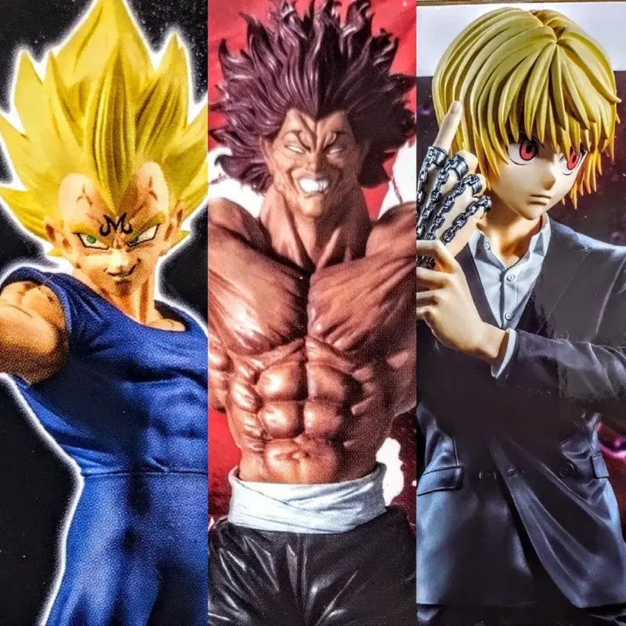 피규어 묶음 판매입니다. Grandista 드래곤볼 베지터 바키 한마 유지로 헌터헌터 크라피카 의 3체 세트입니다. 모두 미개봉이지만, 인형뽑기 경품이므로 획득 시 상자에 약간의 흠집이 있을 수 있으니 양해 부탁드립니다.