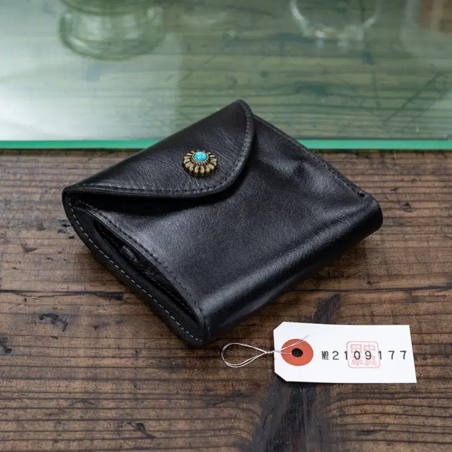 백동으로 만들어진 콩초에는 터콰이즈가 장식되어 있어, 은은한 악센트가 되고 있습니다. 특별한 관리는 필요 없으며, 가죽과 함께 경년 변화를 즐길 수 있습니다.