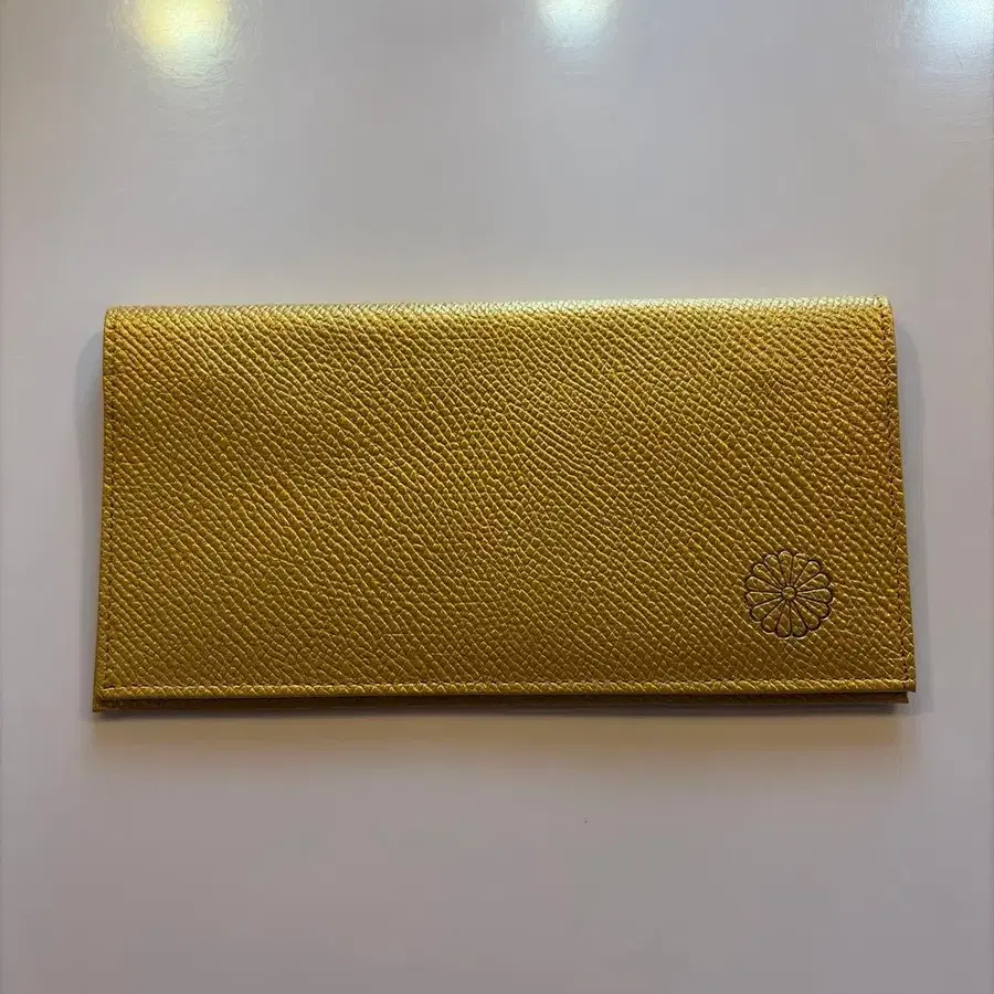 황실의 장지갑입니다. 미사용 새상품이지만, 지퍼 부분의 자국이 약간 눈에 띕니다. 색상은 골드입니다.