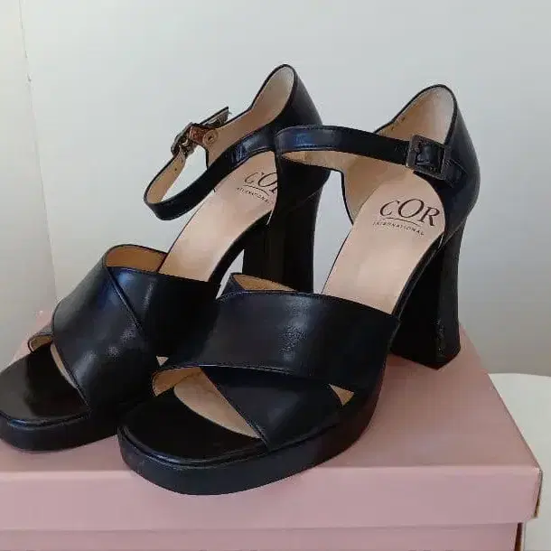 가죽 소재의 스트랩 하이힐, 엘레강트한 디자인. - 브랜드: COR - 색상: 블랙 - 스타일: 하이힐 - 소재: 가죽 - 디자인: 스트랩 포함 - 굽 높이: 9.5cm 방문해 주셔서 감사합니다. 약간의 긁힌 자국이 있지만, 많이 신지 않았던 것 같습니다. 정품 상자는 없습니다. 잘 부탁드립니다. 색상 - 블랙 계열 굽 높이 - 7.1~10cm 발가락 - 오픈토 밑창 굽 모양 - 와이드 힐