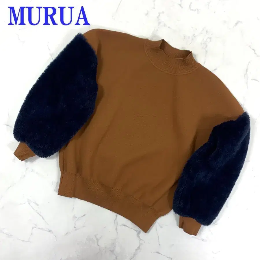 무루아 니트탑 퍼 브라운 네이비 폴리에스테르 F C4442