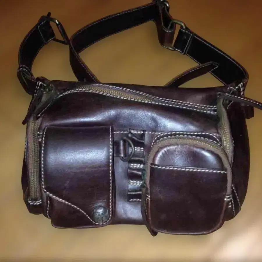 다크 브라운 색상의 가죽 소재로 된 다기능 포켓이 부착된 숄더백입니다. - 색상: 다크 브라운 - 소재: 가죽 - 디자인: 다기능 포켓 부착 - 스타일: 숄더백 - 스트랩: 조정 가능 방문해 주셔서 감사합니다. 사용감이 있지만 아직 사용할 수 있습니다.