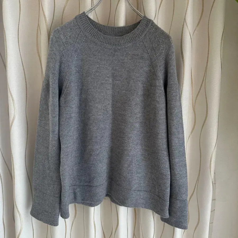 ATON 에이톤 로우 게이지 크루넥 니트 그레이