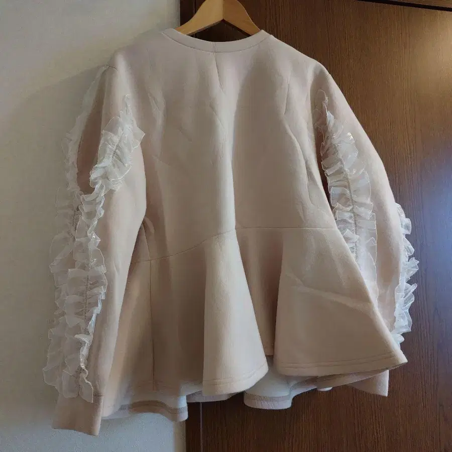 프릴 소매의 페플럼 디자인 트레이닝복.