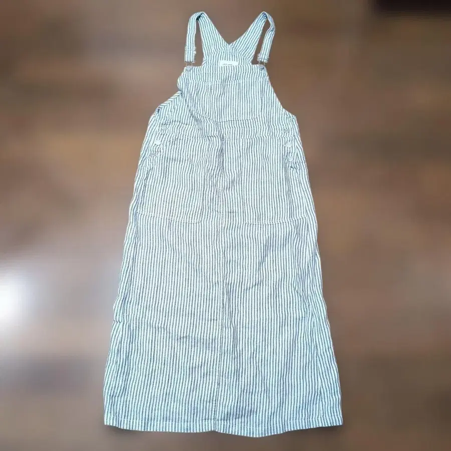 니코앤드의 린넨 살로펫 원피스입니다. 히코리 스트라이프, M 사이즈. 뒷면에 슬릿이 있습니다. 미사용 제품입니다. 완판템.