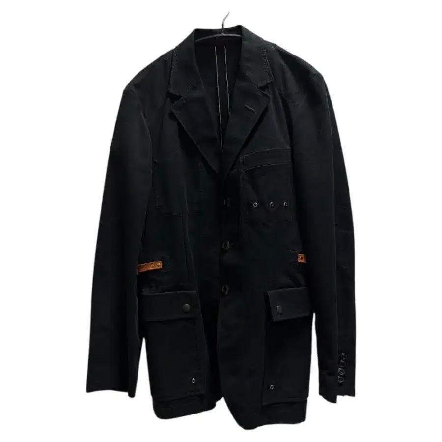 폴스미스의 스타일리시한 블랙 테일러드 자켓. 착용 횟수는 2회 정도로 거의 비품에 가깝습니다. 브라운 가죽으로 원 포인트가 들어간 레어하고 멋스러운 디자인입니다. - 색상: 블랙 - 스타일: 테일러드 자켓 사이즈 - L