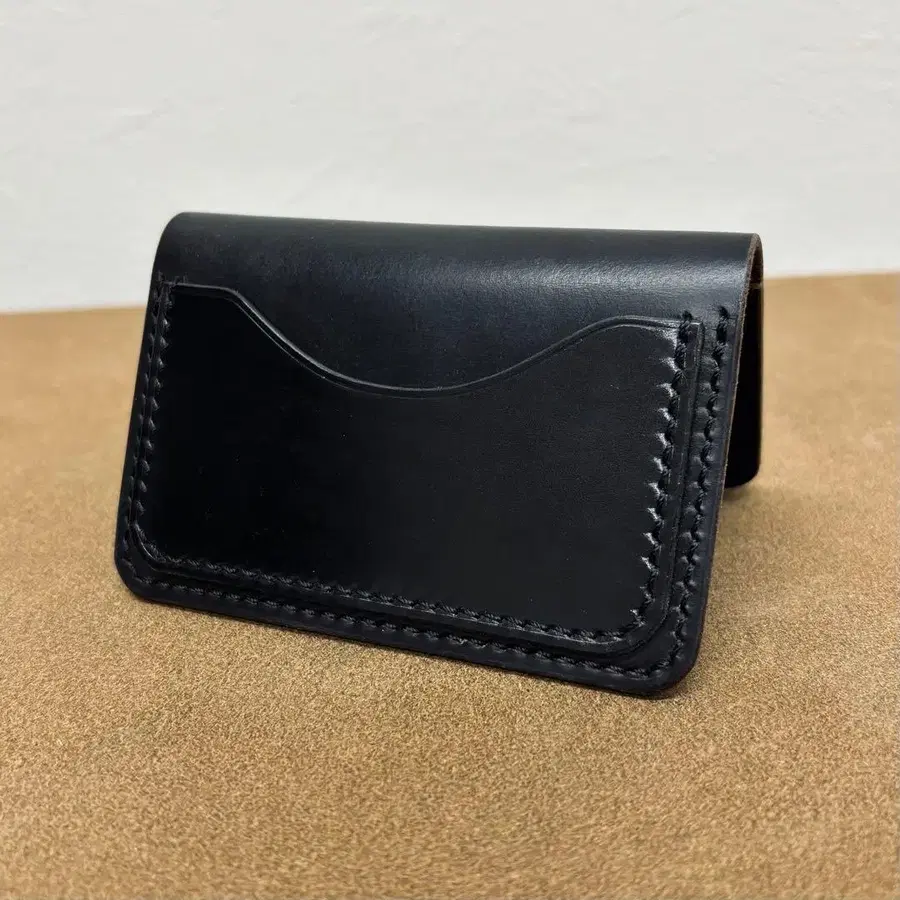 전체 수작업으로 제작한 카드 케이스입니다. 외부는 호윈사제 크롬 엑셀, 내부는 MARYAM사제 호스버트, 외부 포켓은 신키피혁사제 코도반을 사용했으며, 전체적으로 토코 처리를 했습니다.
