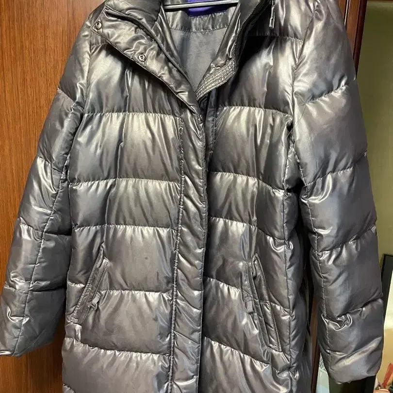 유니클로 다운 자켓 다운 브라운 보라색 드로 코드 포함 미사용